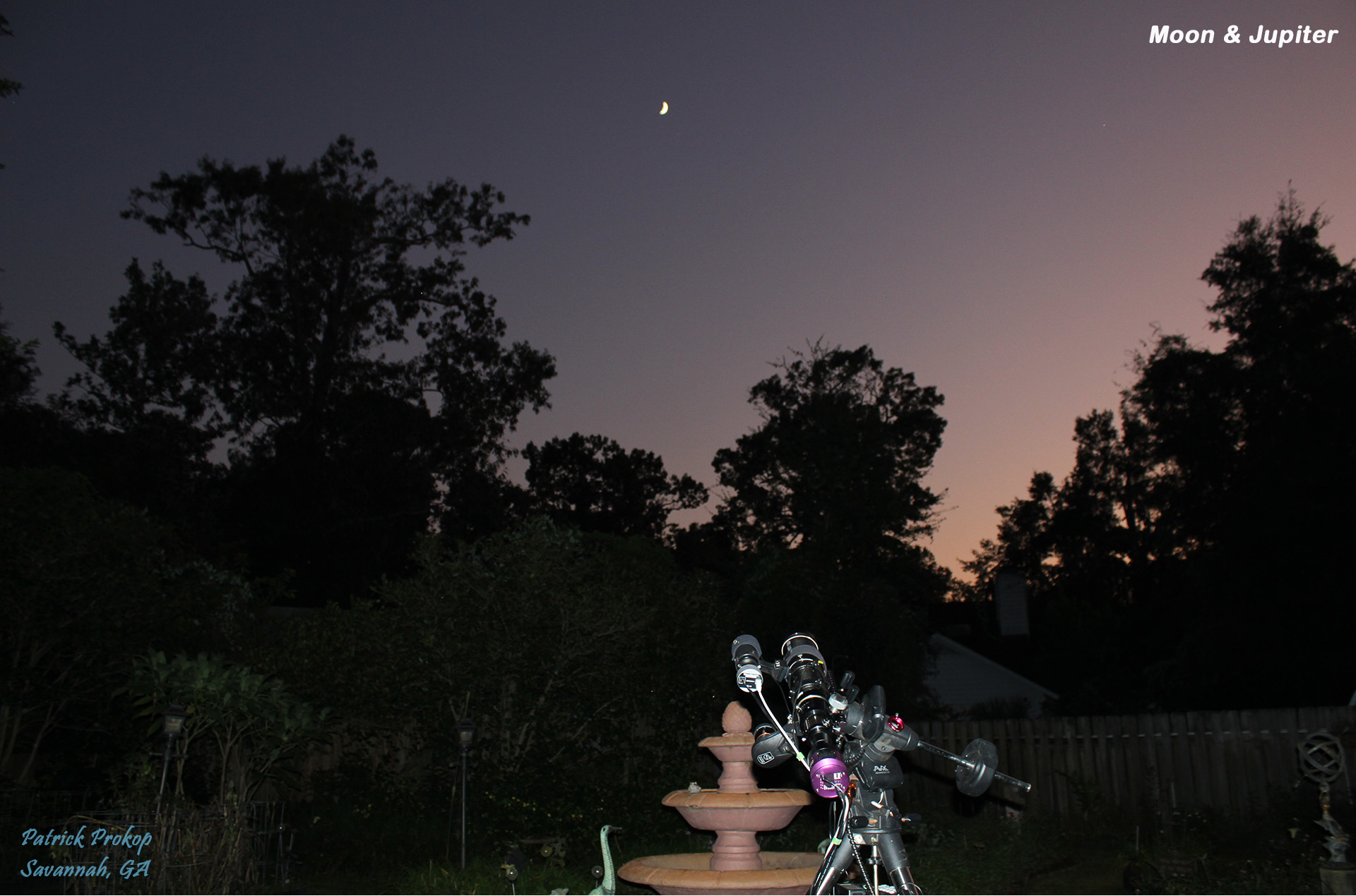 The Orion ED80T CF Triplet Apochromatic Refractor Telescope pointing at the moon and Jupiter. I also use this scope for the this view of the Eastern Veil Nebula.